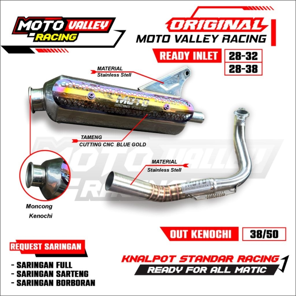 Knalpot Standar Racing Stainles Original Moto Valley Racing PNP Beat Scopy Vario110fi inlet 28-32 28-38