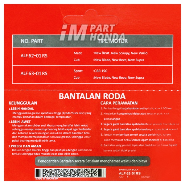 ALF6201RS Laher Roda Depan 6201 RS Supra X 125 Lama Batman Karisma Beat Scoopy Spacy Vario 110 125 150 JKT