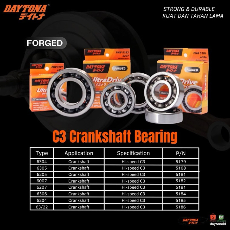 BEARING KRUK AS DAYTONA HI SPEED C3 LAHER BANDUL 6305 63/22 6304 6205 6007