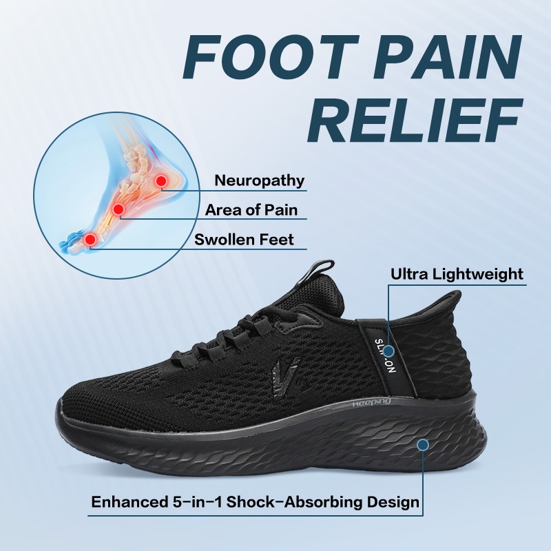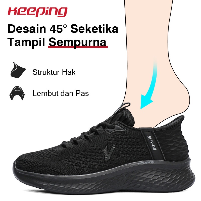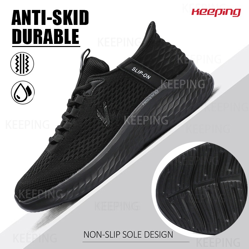 Keeping Sepatu Sneakers Pria Hitam Polos Sepatu Lari Slip On Sepatu Sekolah Running Gym Shoes Kss101