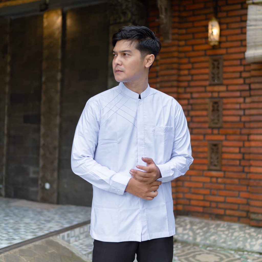 Asakhi - Baju Koko Pria Hadroh Kombinasi Motif Marvel Lengan Panjang Warna Putih M L XL