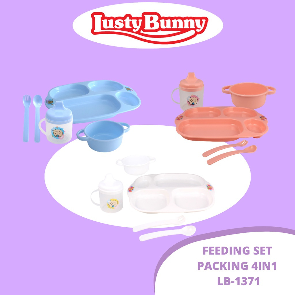 Jessen Lusty Bunny LB-1363/1371 Feeding Set Peralatan makan bayi / Kado Bayi 5 in 1 (Kemasan Plastik)