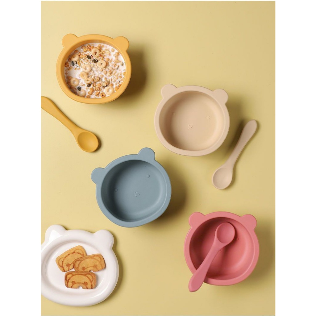 ULTRA Mangkok Mpasi Sendok Bayi Silikon Tahan Panas Anti Tumpah BPA FREE Bear Food Grade