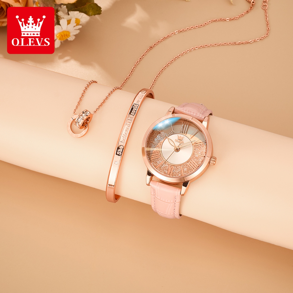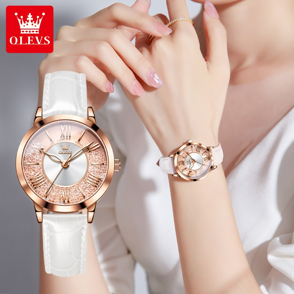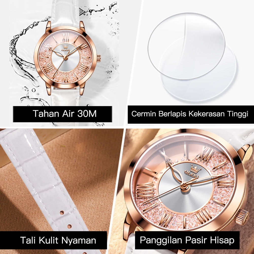 Olevs Jam Tangan Wanita Anti Air Original Cewek Luminous Fashion Kulit Tali Women Watch Model 5539