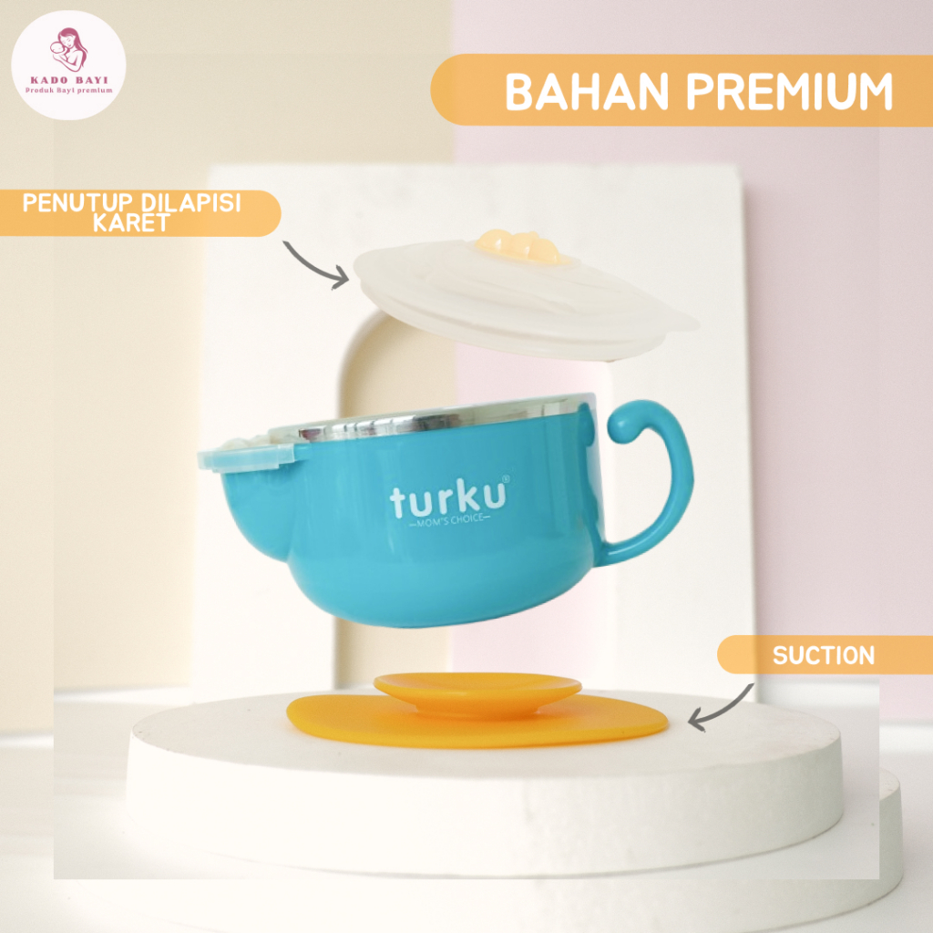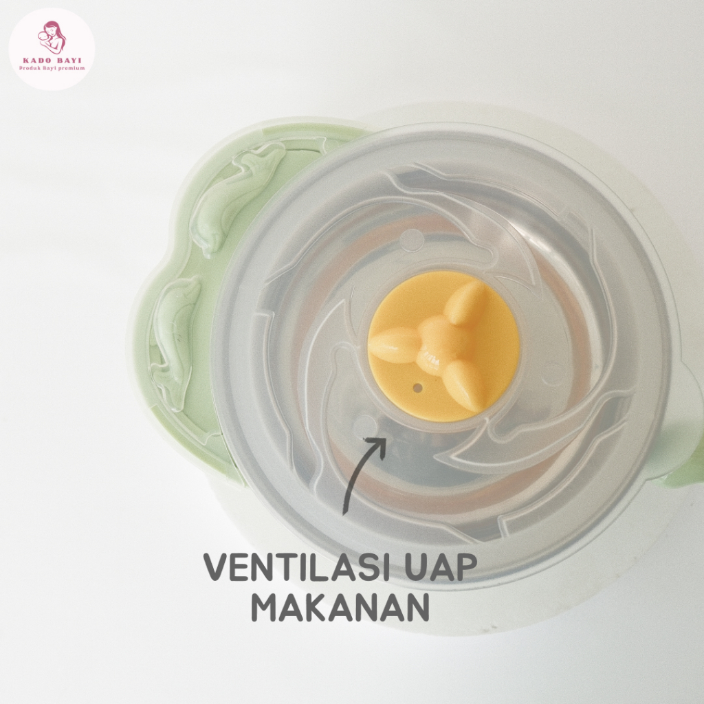 [ 600ML BESAR ] Mangkok Bayi Anti Tumpah - Dasar Anti Selip Rekat Kuat di Meja, Single Handle Stainless Steel 304, Tutup