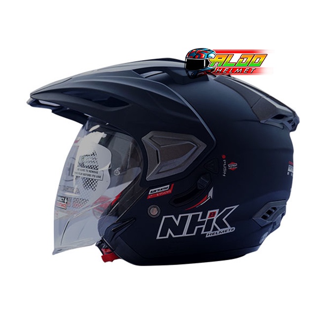 HELM NHK PREDATOR CRYPTON SOLID BLACK DOFF | Helm NHK DOUBLE VISOR | Termurah | HALF FACE 100 PERSEN ORIGINAL