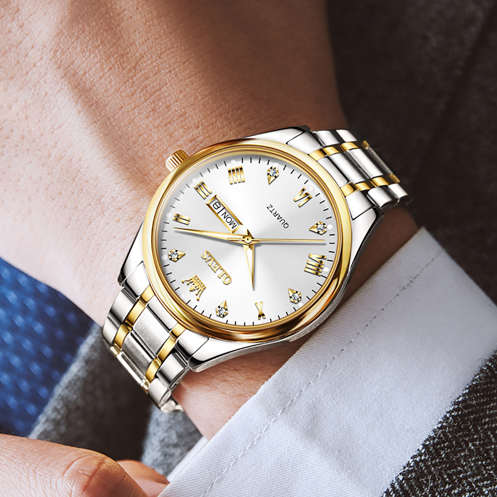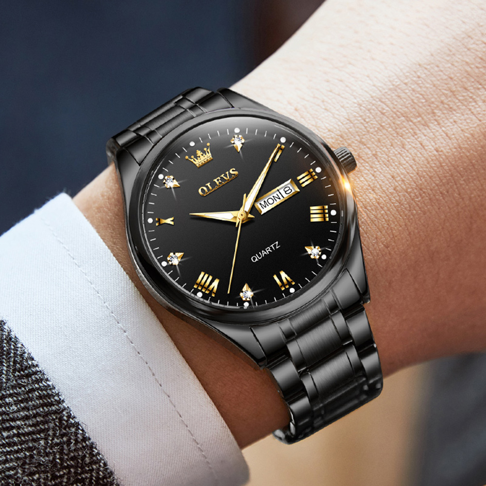 Olevs Jam Tangan Pria Original Anti Air Tahan Led Luxury Analog Keren Stainless Steel Men Watch Hitam Putih