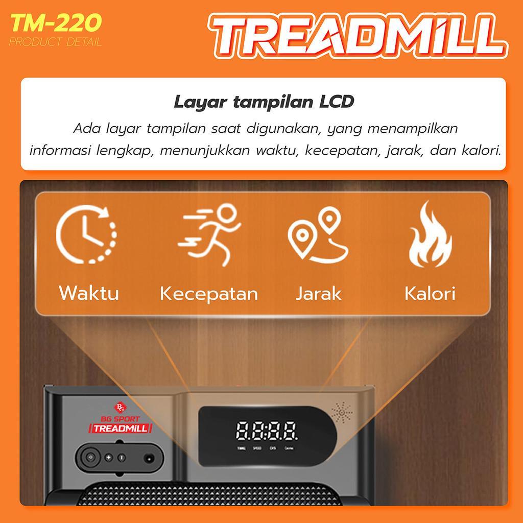 BG SPORT Treadmill Elektrik Lipat TM-220A / TM-220B | Treadmill Rumah Senyap LED Display Remote Control 120KG