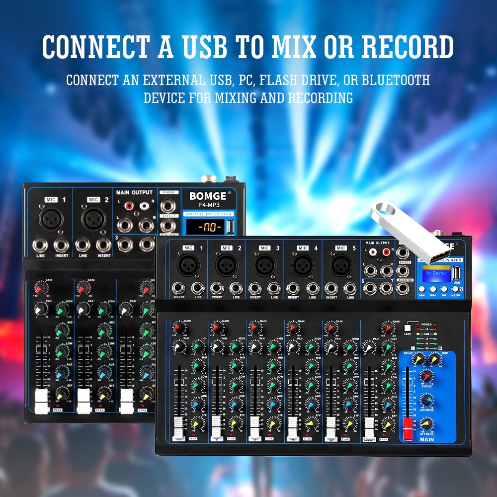 mixer audio bomge f7 17v ac usb dj Sound mixing console mp3 jack 48v power soundcard mixing console mp3