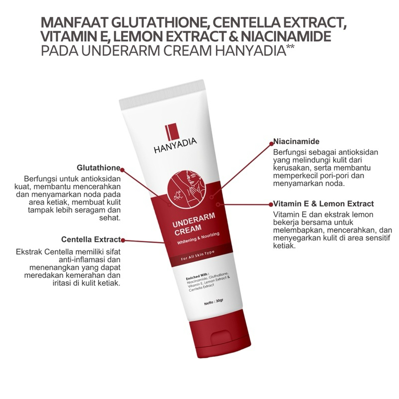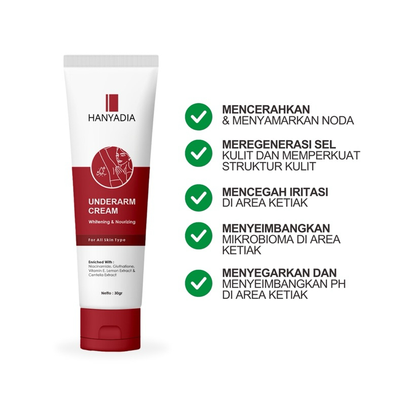 Hanyadia Glowing Underarm Cream / Pencerah & Pemutih Ketiak Dan Selangkangan Aman Untuk Ibu Hamil Dan Menyusui