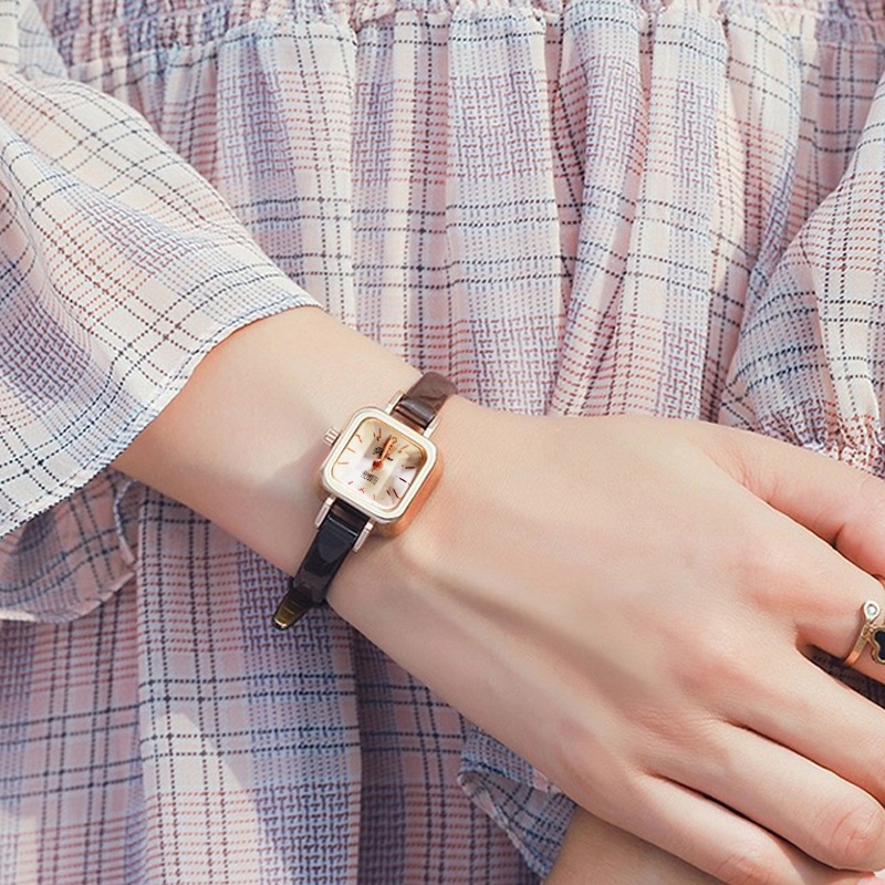 Jam Tangan Casual Wanita Kecil Strap Pu Analog Fashion Quartz Dial Kotak