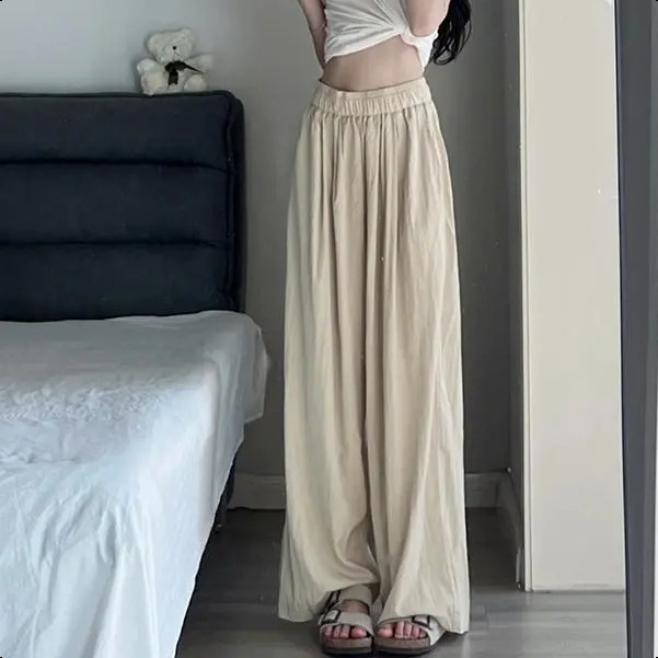 GDTIMA Celana Wanita Highwaist Elastic Waist Celana Panjang Loose Pants