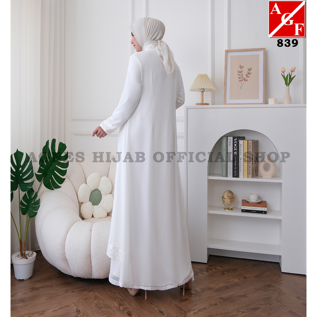 Agnes Hijab - Virly Dress Gamis Putih Lebaran 2026 Terbaru Baju Muslim Wanita Dewasa Gaun Pesta Remaja Abaya Hitam Simple Elegan Haji Umroh 839