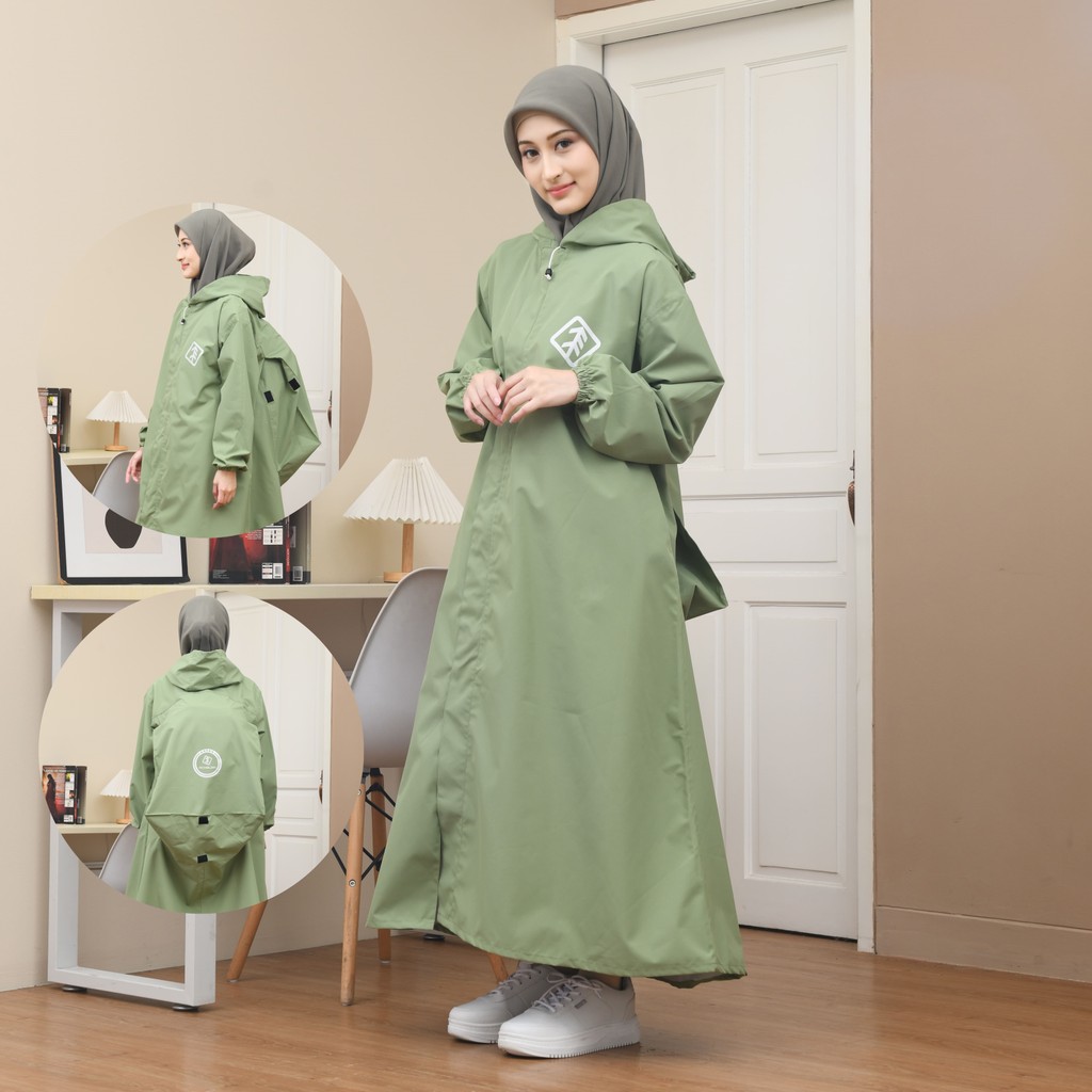 Jas Hujan Wanita GAMIS BACKPACK SYAR'I MUSLIMAH JUMBO Bahan Tebal KUAT Dan ANTI REMBES