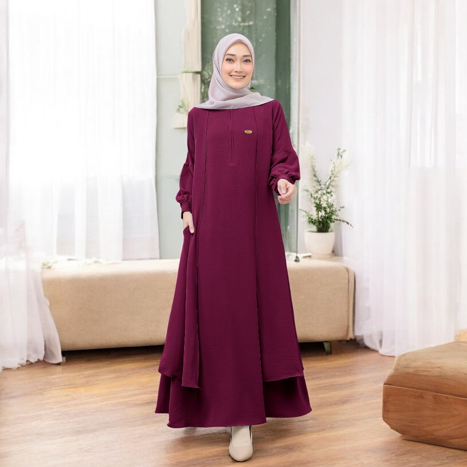 Gamis Polos Variasi Layer Zalenka Dress Size S M L XL Bahan Tifany Twill Baju Daily Wear OOTD Casual