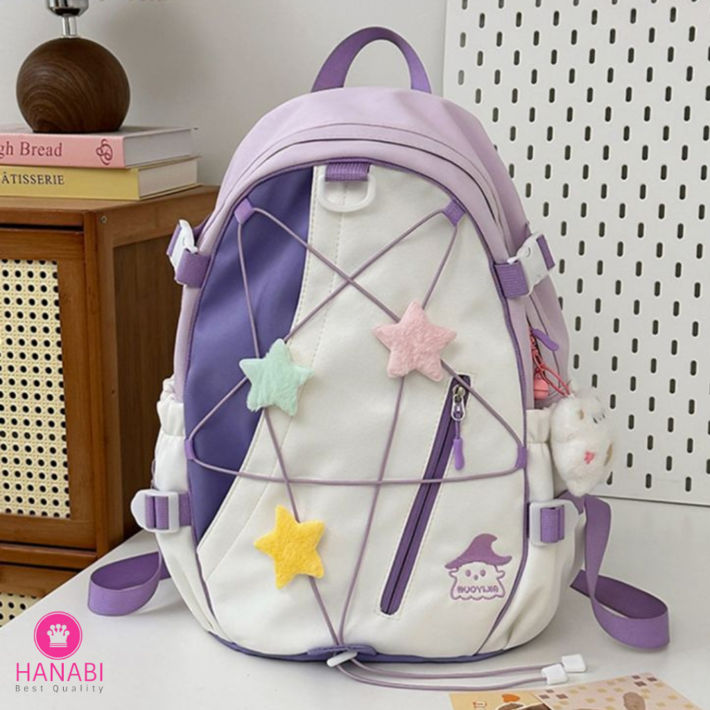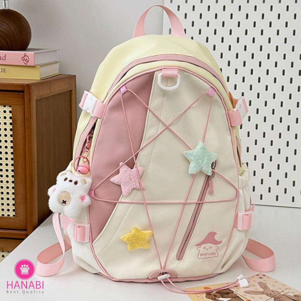 HANABI - Tas Ransel Premium NEONA Backpack Wanita Tas Sekolah Tas Main Free Gantungan