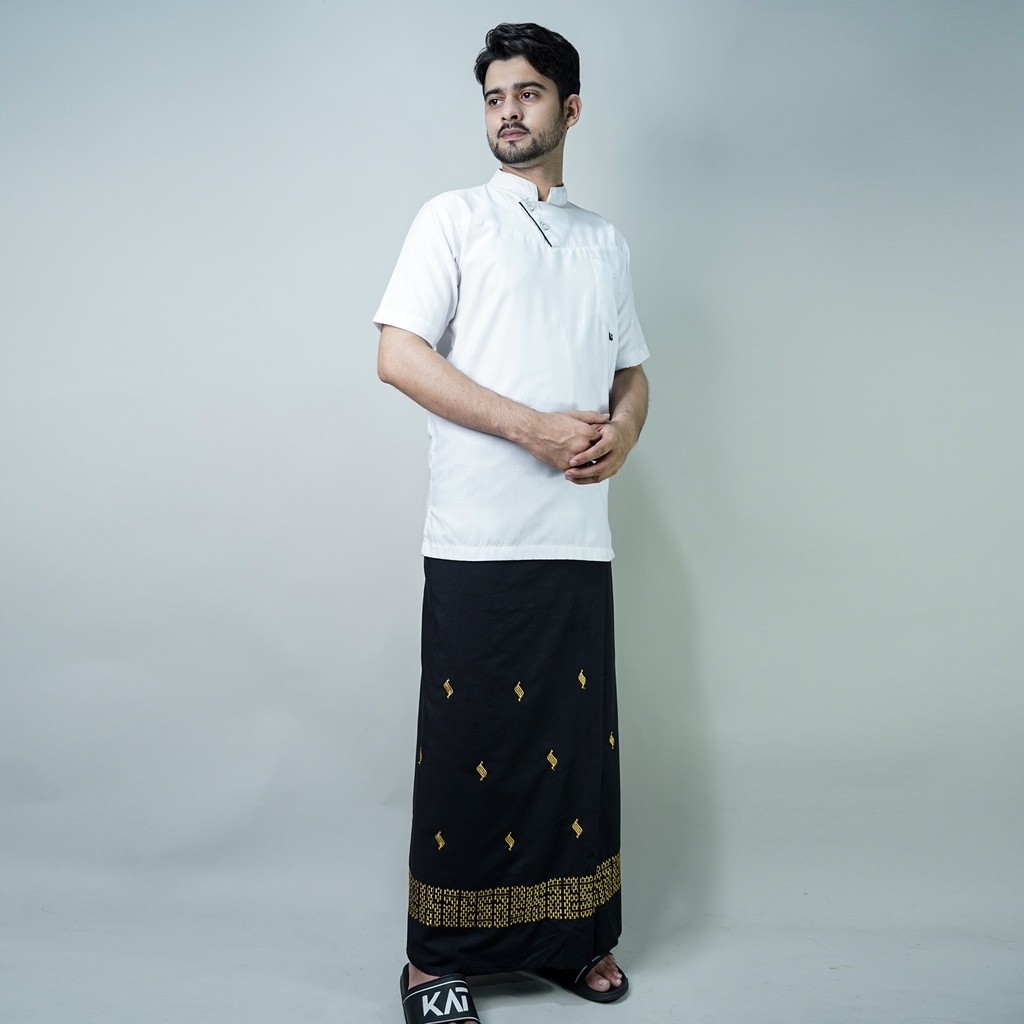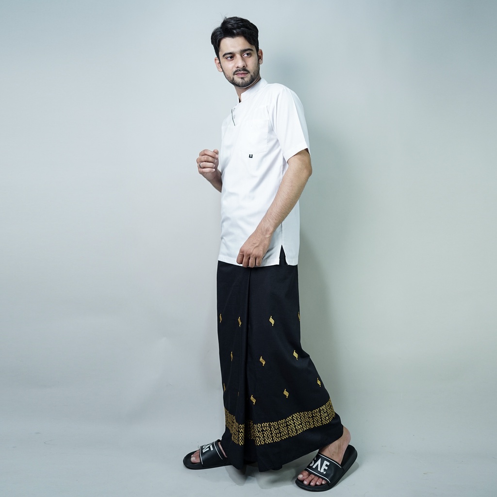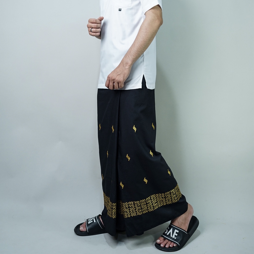 Katsae - Sarung Bordir Motif 3D Bordir Timbul Sarung Pria Dewasa Warna Hitam Sarung Sholat 100 PERSEN Bordir