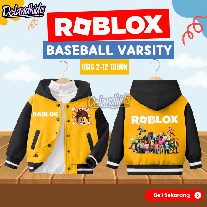 DELAND- JAKET ROBLOX BASEBALL VARSITY ANAK LAKI-LAKI & PEREMPUAN USIA 2-12 TAHUN BAHAN COTTON FLEECE DESAIN SPORTY & STYLIS - BASEBALL ROBLOX HITAM, M (2-3 TAHUN)