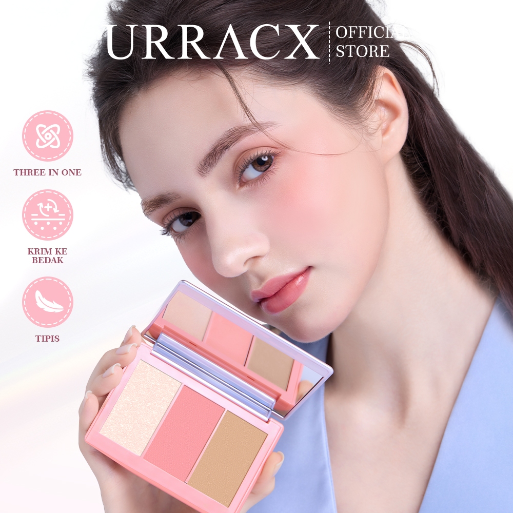 URRACX Blush On Cream Contour Dan Highlighter Face Palette Multi-Use 3in1 Long Lasting High Pigmented Powder Korean Makeup 12G