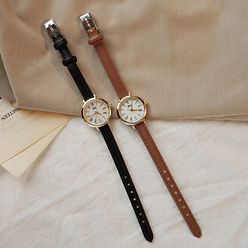 Jam Tangan Casual Wanita Analog Kecil Dial Bulat Dengan Strap Pu Leather Fashion