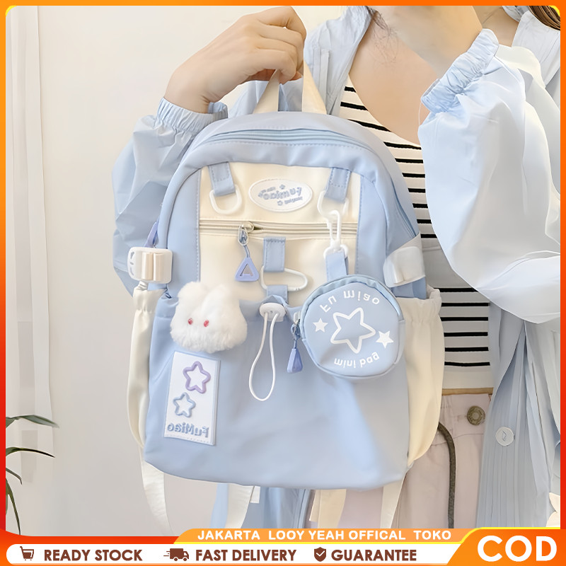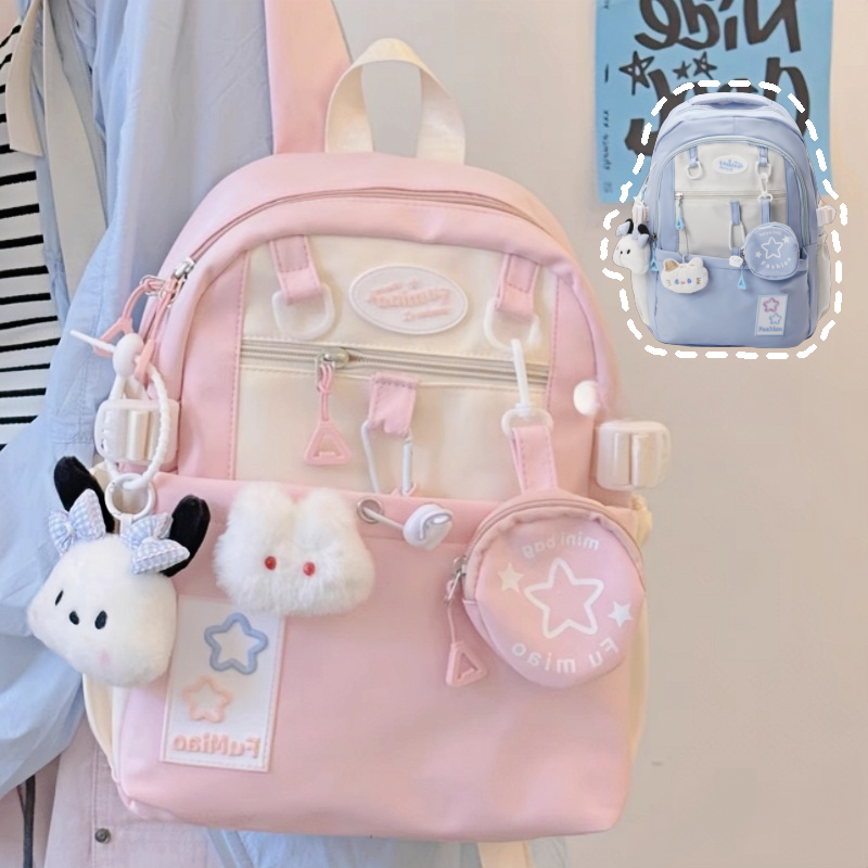 Tas Sekolah Pink ins Korea Siswa Lucu Tas Ransel Mini Import Fashion Wanita Tas Ransel 3 Liontin Gratis