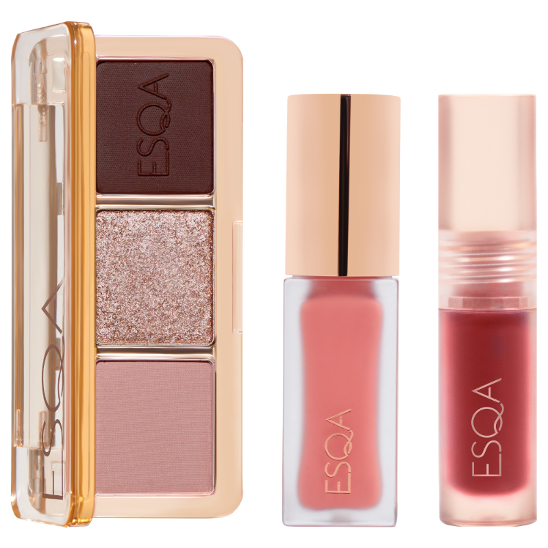 ESQA Festive Wonder | Make Up Kit 3 in 1 ( Glaze Eyeshadow Trio , Wonder Crush Serum Liquid Blush , Slick Drip Serum Tint )