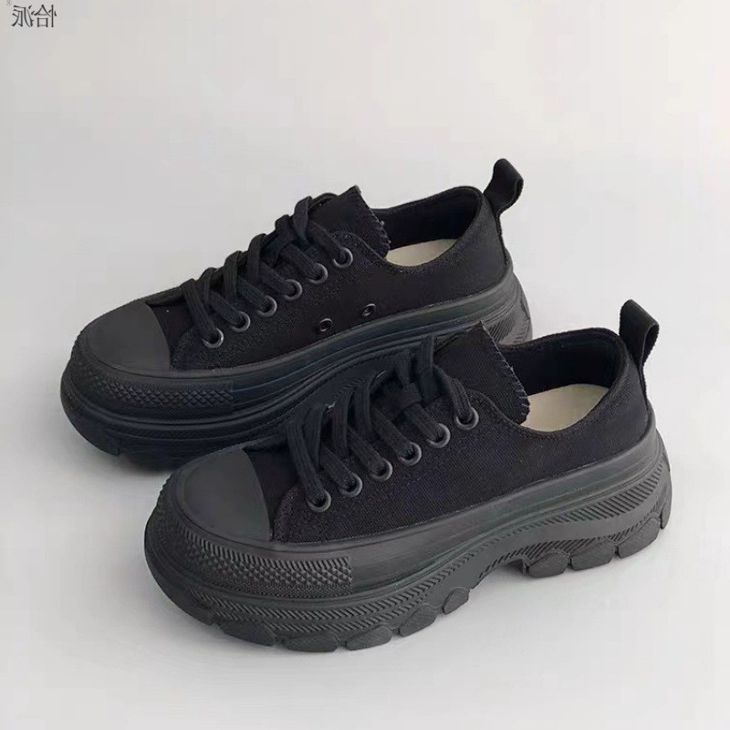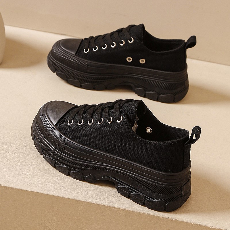 Sepatu Sekolah Wanita Hitam Polos Sepatu Sneakers Wanita Bertali Kasual Korea Import Jaemin 141