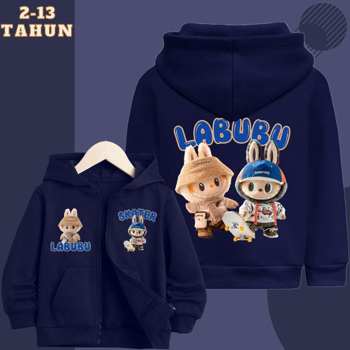 JAKET LABUBU ANAK LAKI LAKI PEREMPUAN MODEL RESLETING DENGAN KARAKTER DEPAN BELAKANG - USIA 3-13 TAHUN LAKI-LAKI BAYI FASHION - STYLE-DENIM, M (3-4 TAHUN)