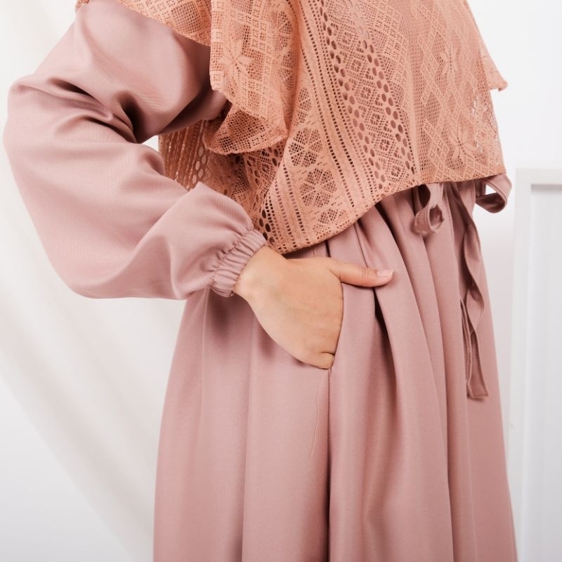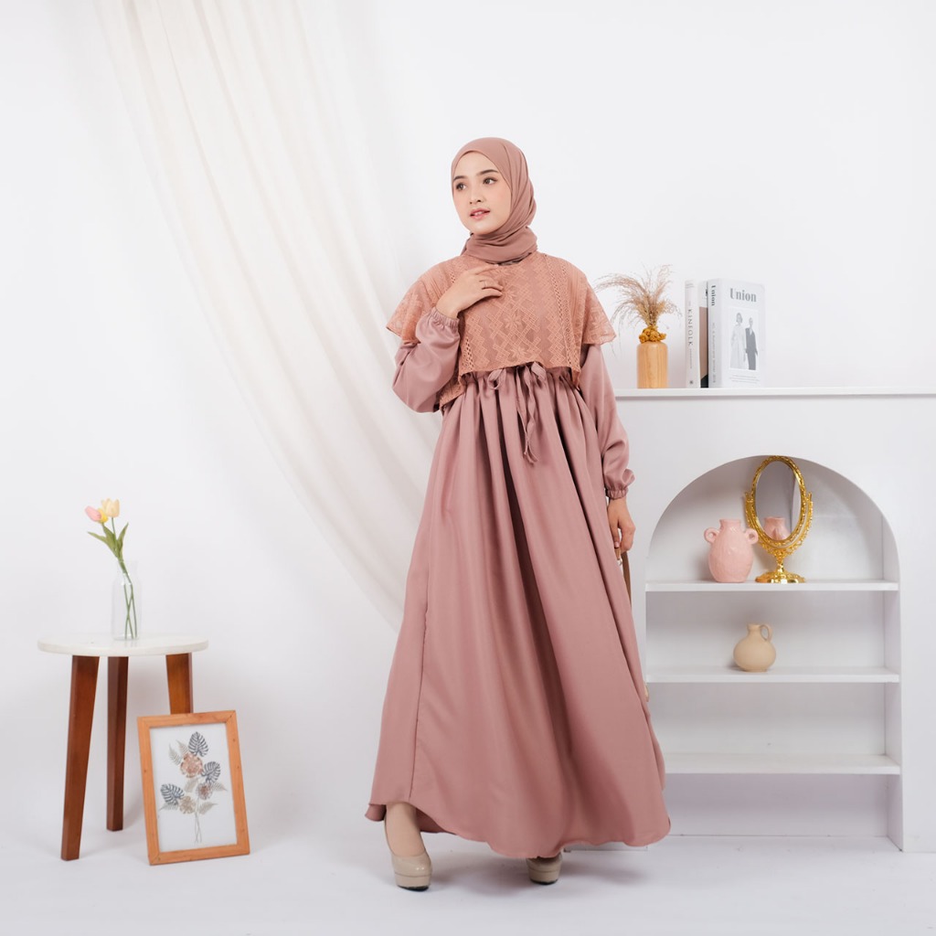 Maria Collection Emma Dress Gamis Elegan Kondangan Muslim Mewah Shakila Kombinasi Brokat Cantik Wanita Nyaman S fit L Busui Wudhu