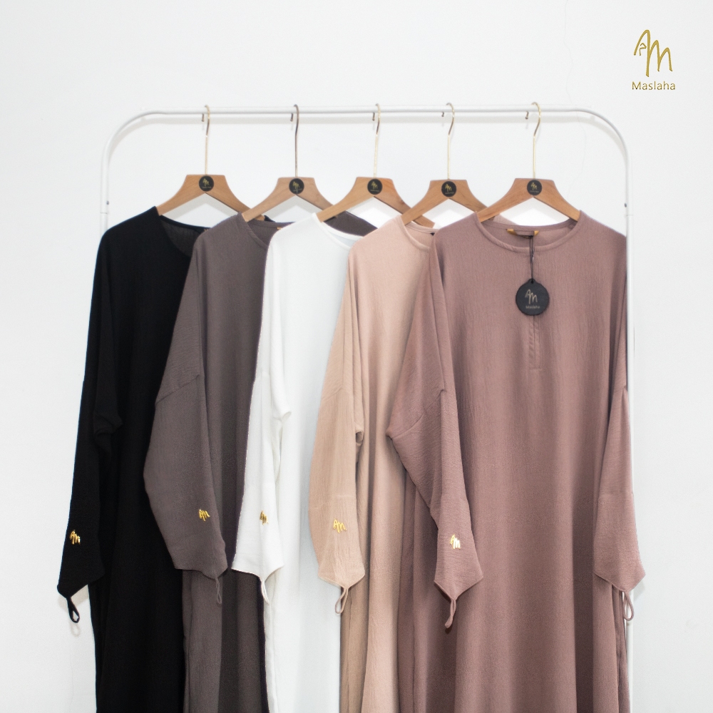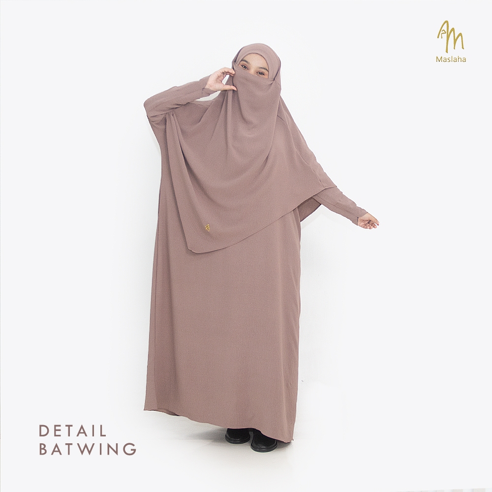 Maslaha Niqab (Abaya Saja) Basic Abaya Batwing Crinkle Premium Dress Gamis Umroh muslimah