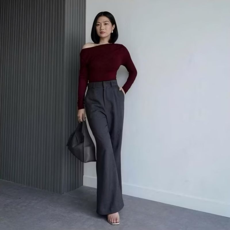 Etta Pants - Celana Semi Flare Pants Highwaist - Celana Kulot Cutbray Korean Style Wanita