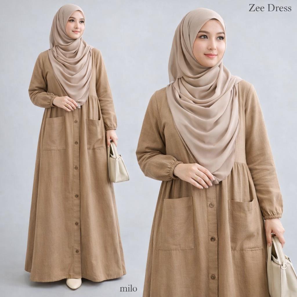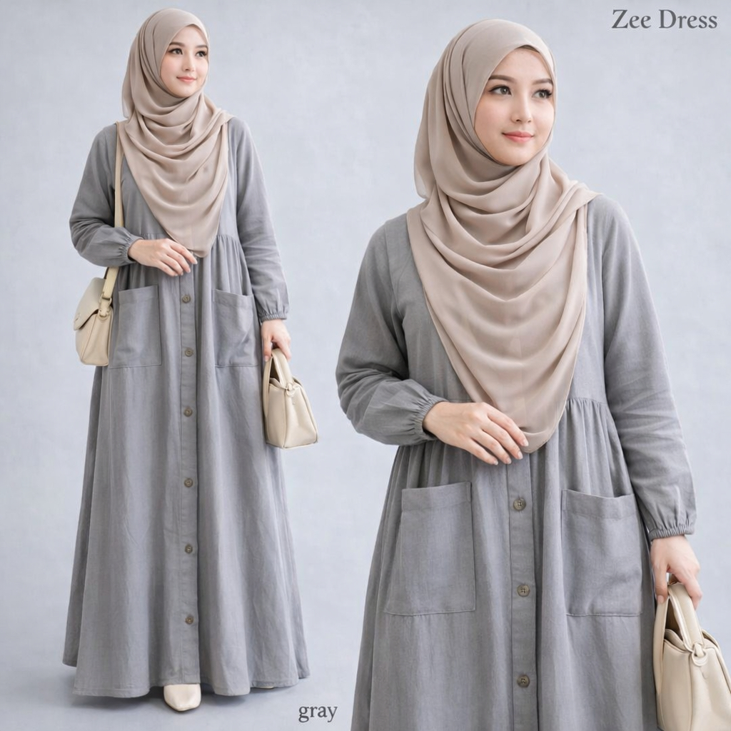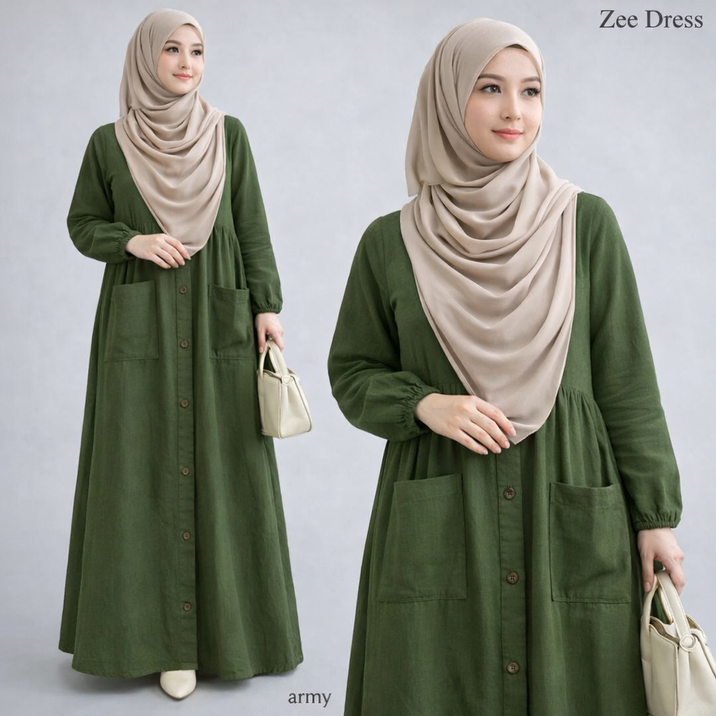 Vallina Outfit - Zee Maxy Gamis Linen Rami Modern Dress Muslim Wanita Remaja Premium M Fit XL