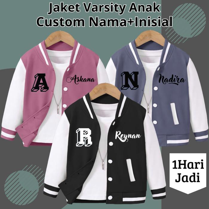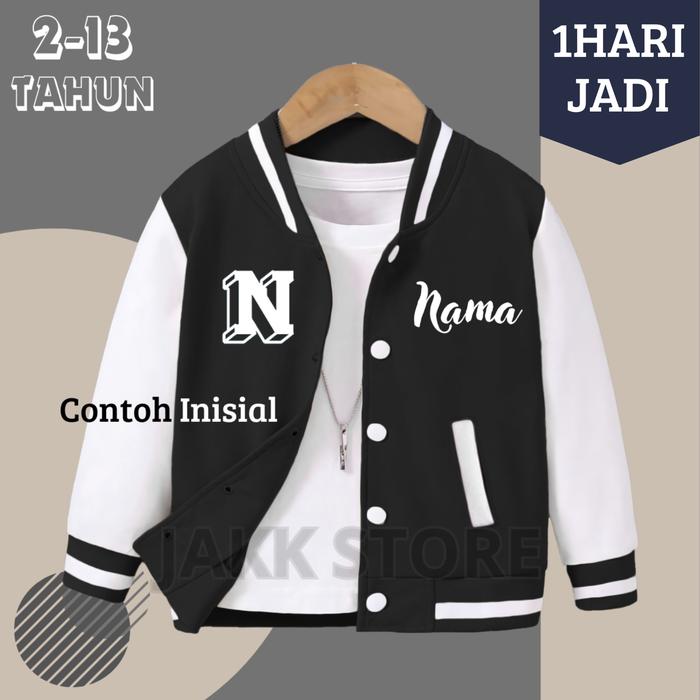 JAKET ANAK LAKI LAKI USIA 2-13 TAHUN SWEATER BASEBALL VARSITY ANAK COWOK KEREN BISA CUSTOM NAMA UNTUK HADIAH ULANG TAHUN - HITAM, M (2-3 THN)