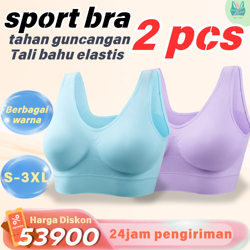 2PCS Sport Bra Jumbo Push Up gym Sport Bh Tanpa Kawat Bra Olahraga Wanita 811