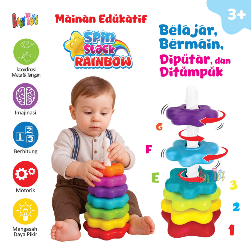 Mainan Anak Ring Donat Susun Putar Anak Bayi Edukatif Edukasi Motorik Sensorik SNI Aman Untuk Anak