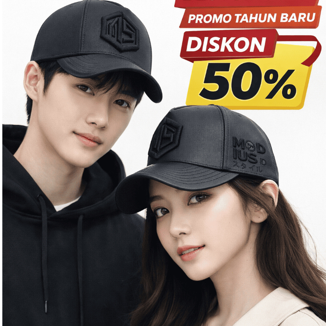TOPI MODIUS ORIGINALE 3D BLACK ON BLACK KULIT KEREN Pria