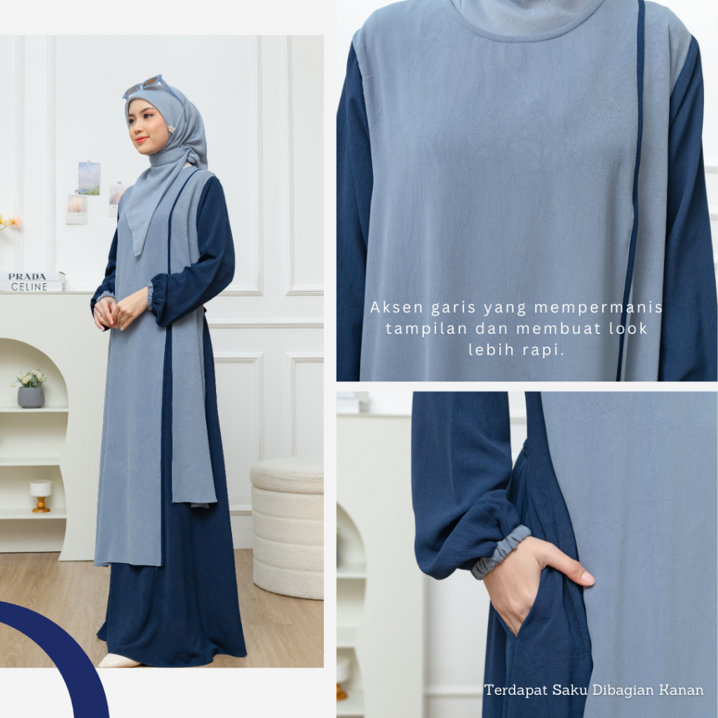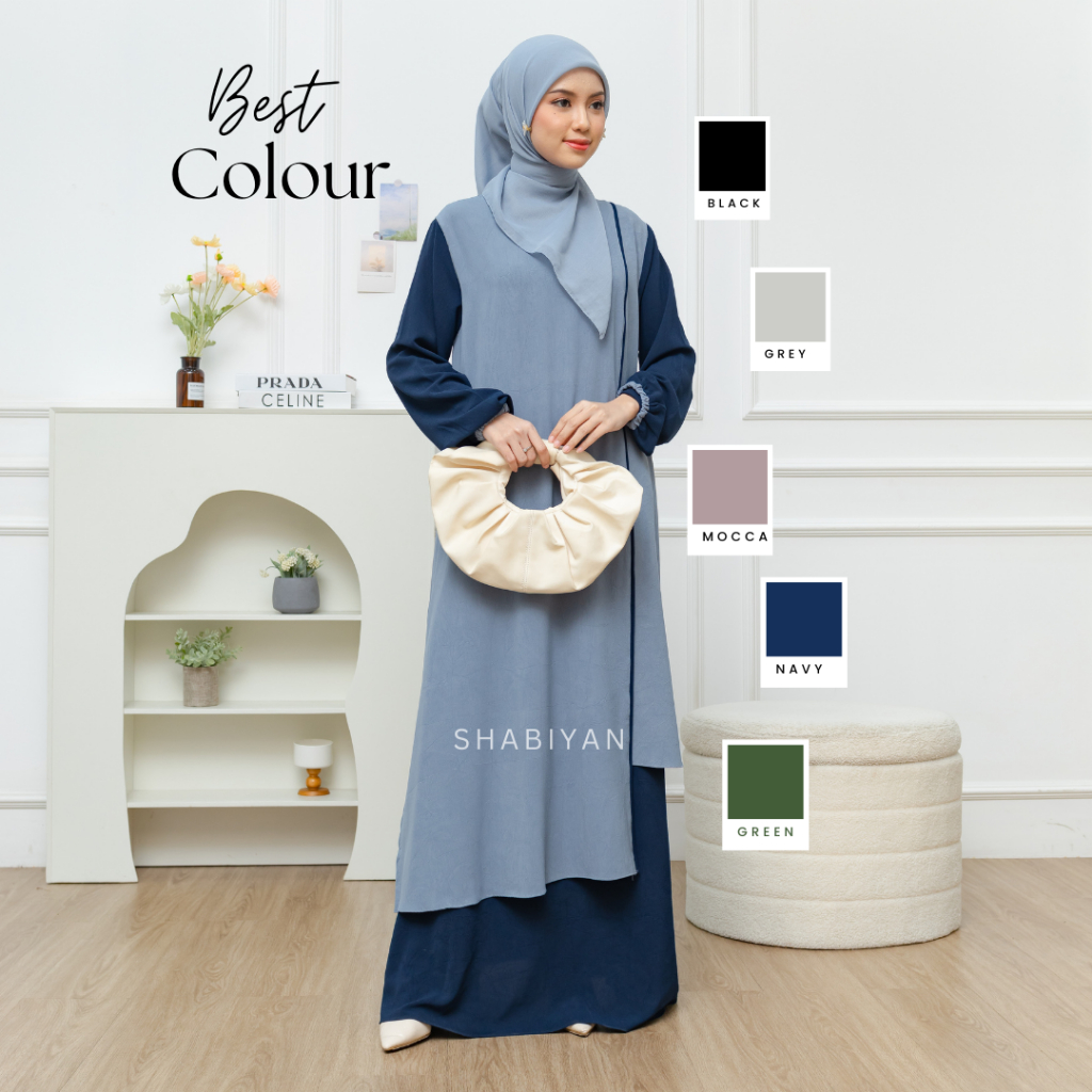 SHABIYAN-435 Gamis Remaja Wanita Model Abaya Kombinasi Layer Depan Bahan Izzara Size XS - XXL