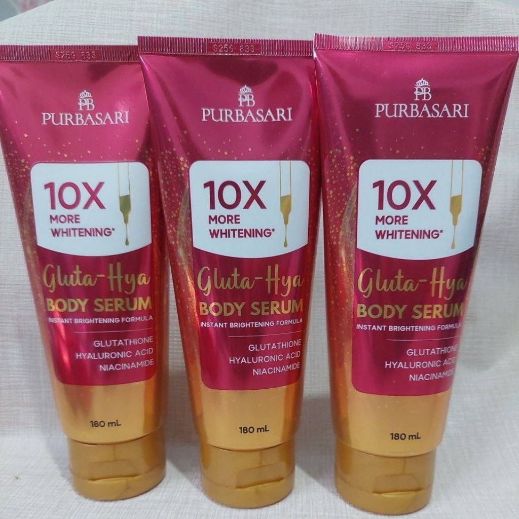3 PCS Merah PURBASARI BODY SERUM GLUTA- HYA 180 ml/ 3 PCS Glutathione Hyaluronic Acid Niacinamide/Mencerahkan