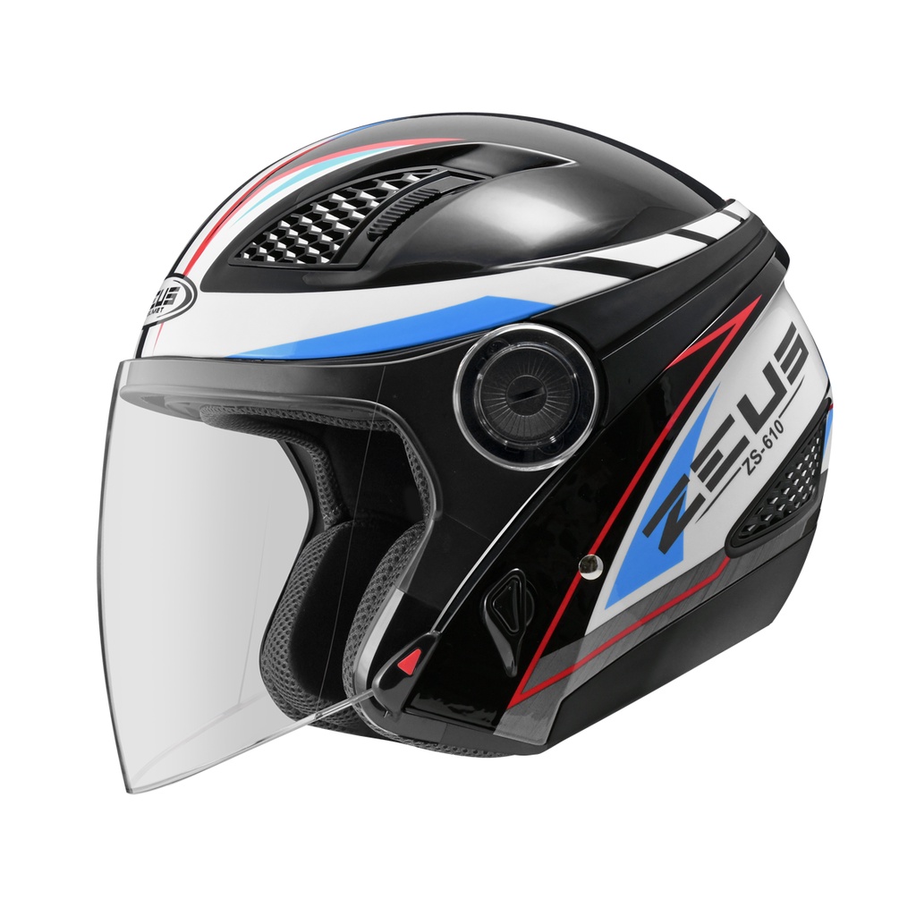 ZEUS ZS 610 BLK 0027 RED BLUE GLOSSY HALF FACE DOUBLE VISOR