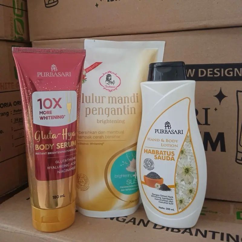 Paket 3 Pcs Purbasari Body Serum 180ml ll Lulur Pengantin 500gr ll Hand&Body Lotion Habbatusauda 200ml