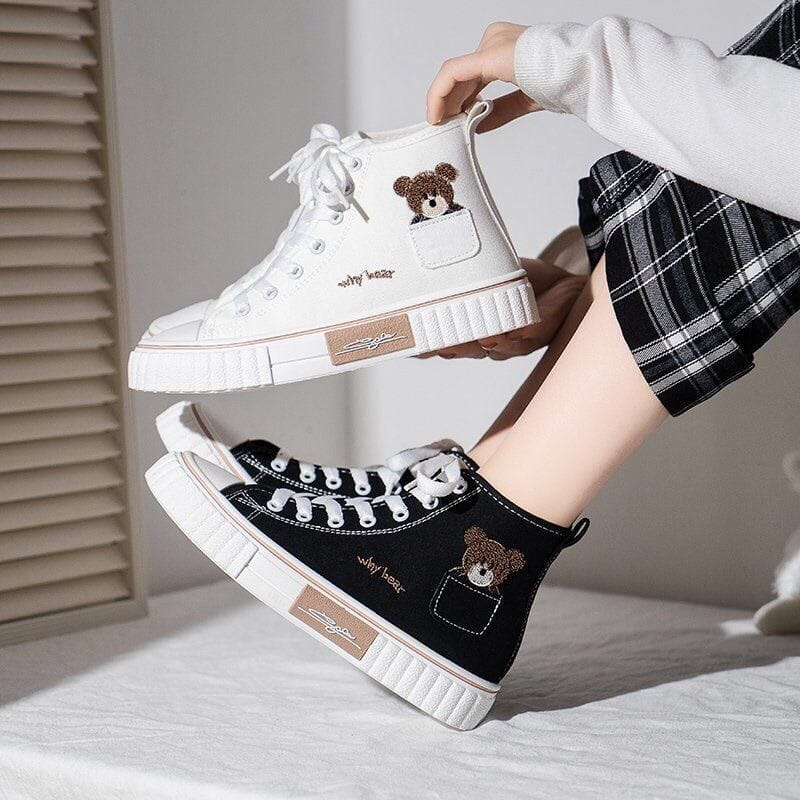 LADANG ONLINE - Sneakers Wanita Boots Fashion TEDDY BEAR Sepatu Sekolah Comverse Karakter Beruang
