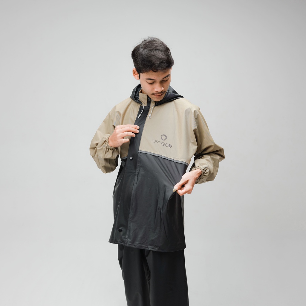ORYGO Jas Hujan Pria Wanita Moka Dewasa Setelan Jaket Celana Full Seal Press