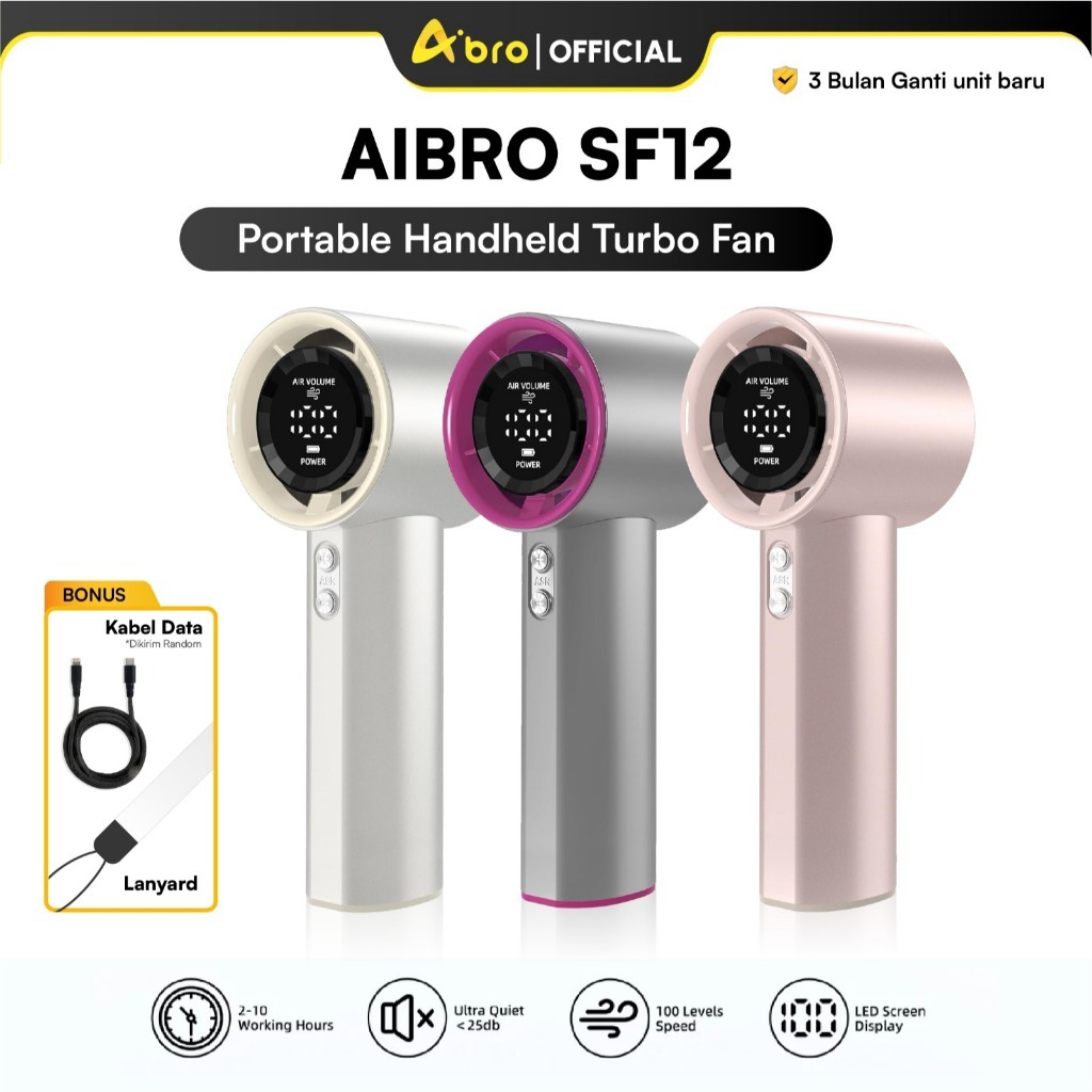 ( TERBARU ) Aibro SF12 Portable Handheld Turbo Fan Kipas Angin Mini LED Screen 100 Speed 4000mAh Garansi 3 Bulan