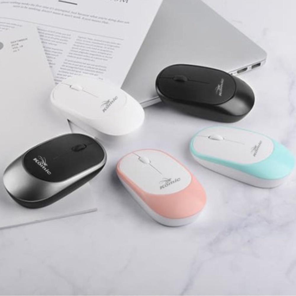 Mouse Wireless Office Optical Silent Click/Klik KOMIC KM-805 Grey Free Baterai - Free USB Receiver