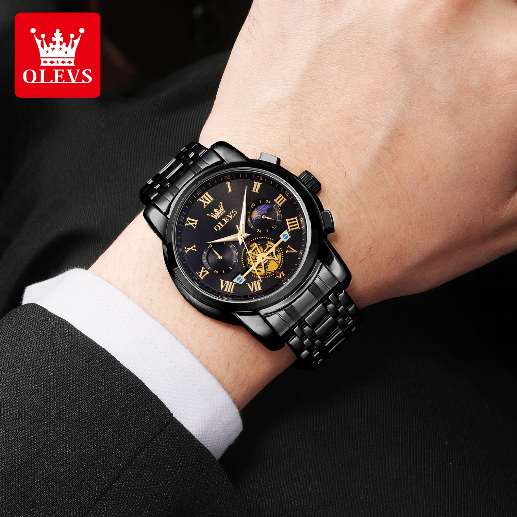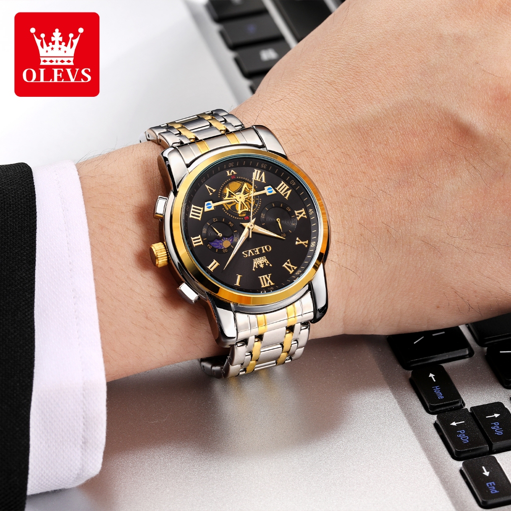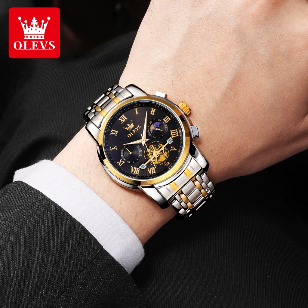 Olevs Jam Tangan Pria Anti Air Original Terbaru Mewah 2026 Multifungsi Chronograph Stainless Steel Watch Men 2859