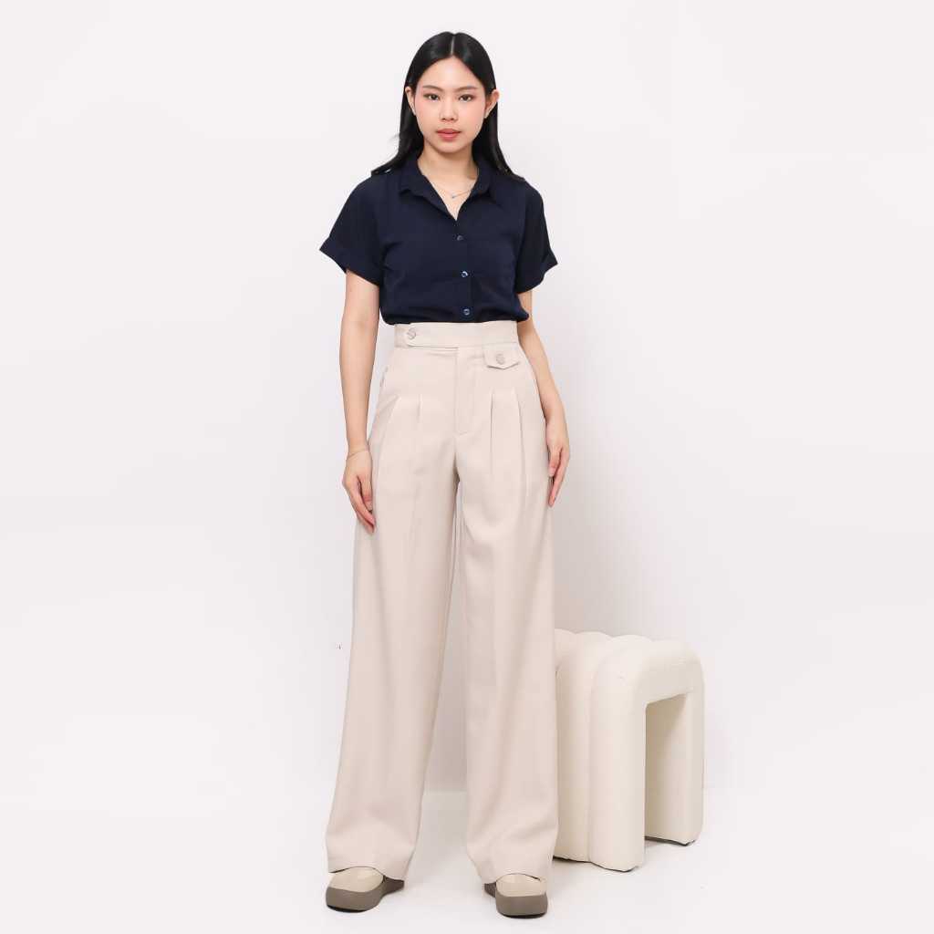 AMARAVE - Celana Panjang Wanita Highwaist Celana Bahan Wanita Kerja Kulot Wanita Kantor Bahan Woll
