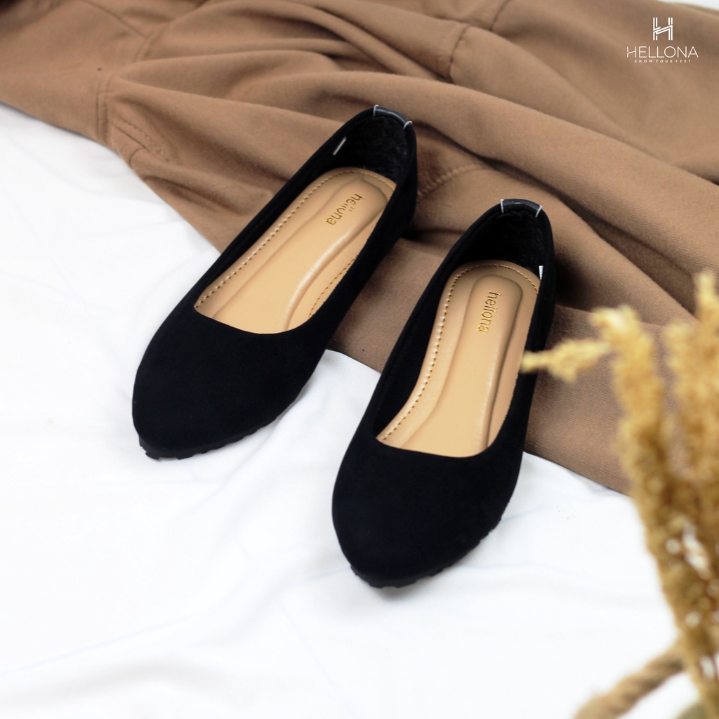 Hellona Gemini Flatshoes Empuk Sol Karet Warna Hitam Polos
