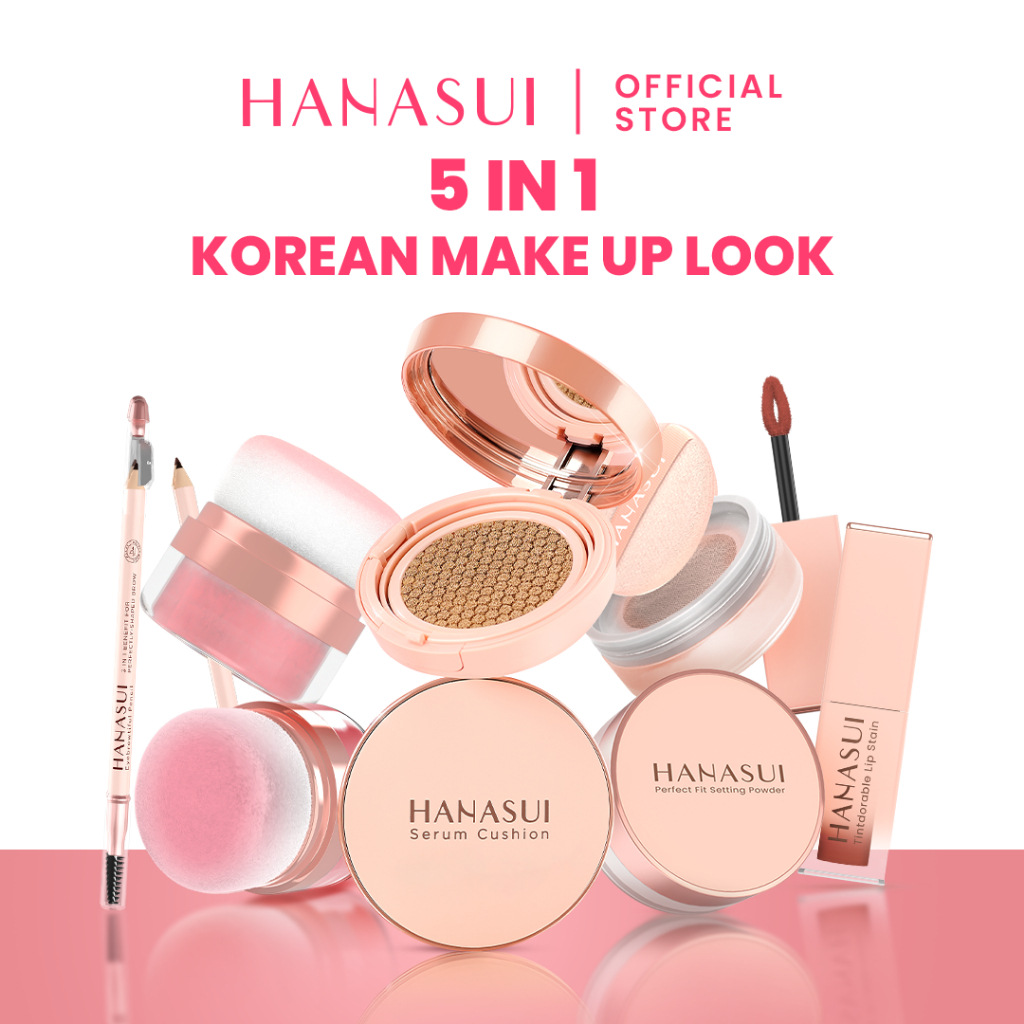 Hanasui 5in1 Korean Make Up Look (Cushion Soulmatte, Blush On, Lip Tint, Eyebrow, Setting Powder) Bundling