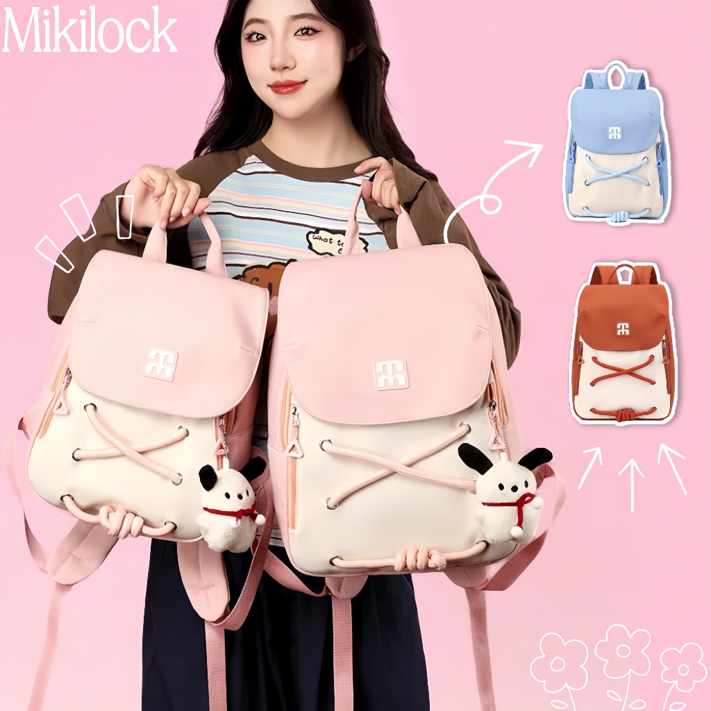 Mikilock Tas Ransel Wanita Korea Import Volume Besar Ins Tas Sekolah Kanvas Siswa Perempuan Kapasitas Besar Tas Laptop W