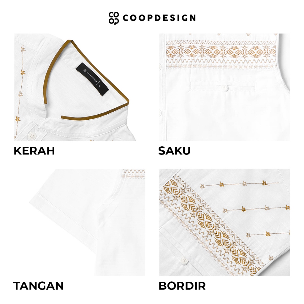 Coop Design - Fauzan Koko Kerah Changi Collarless Katun Dengan Saku Bordir Pria Lengan Pendek